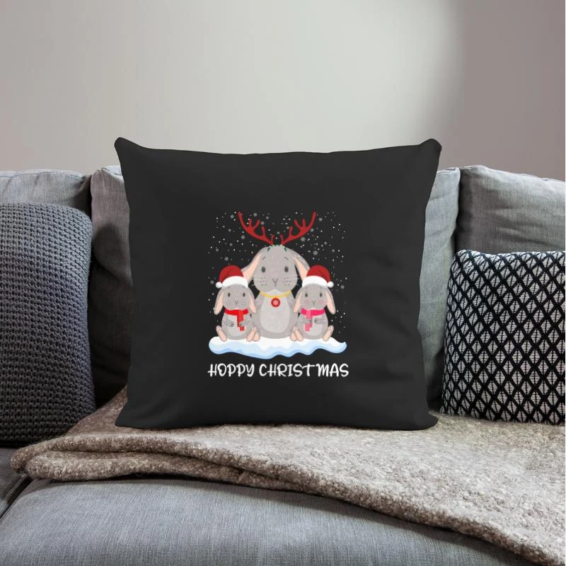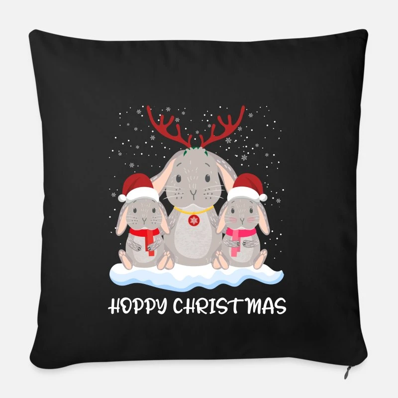 ‘Rabbit Hoppy Christmas Merry Christmas’ Pillowcase 17,3” X 17,3” (45 X 45 Cm) | Spreadshirt